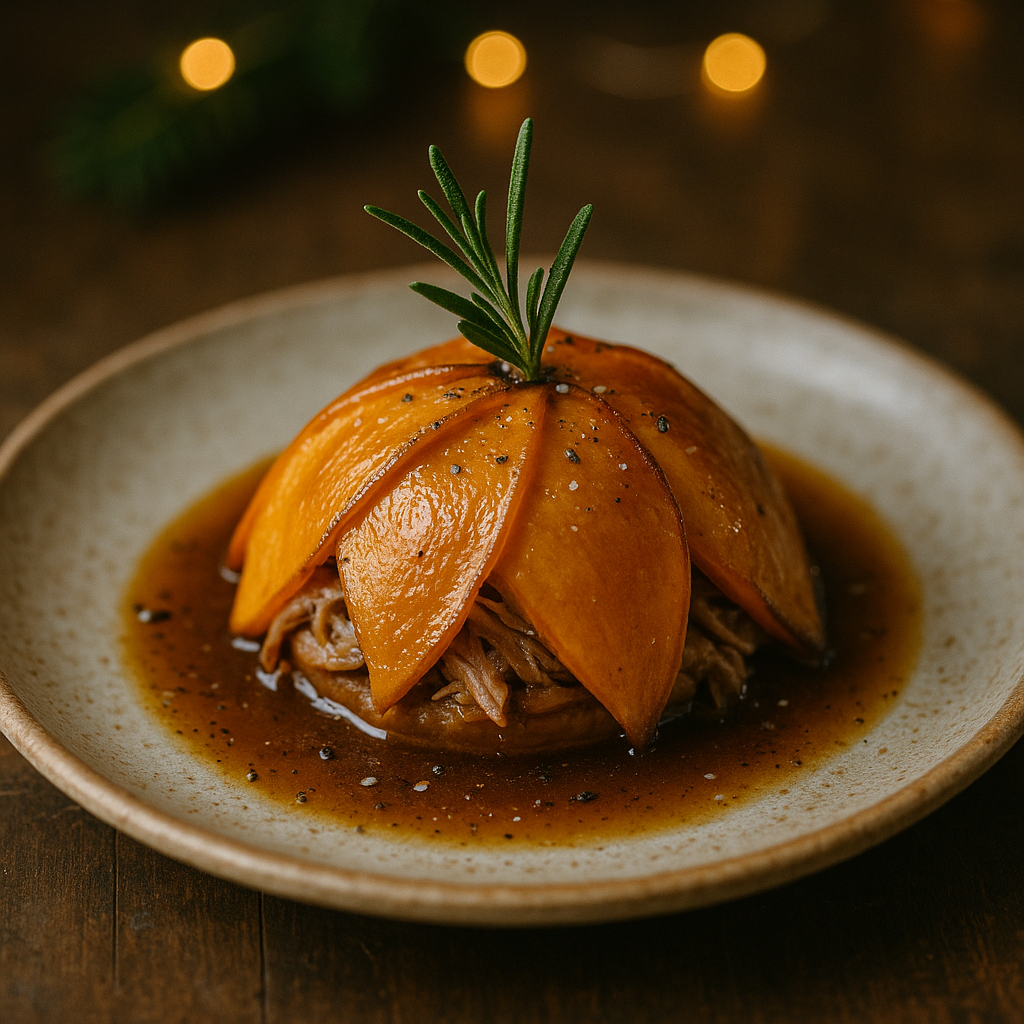 Dôme en trois feuilles de potimarron- canard confit et romarin